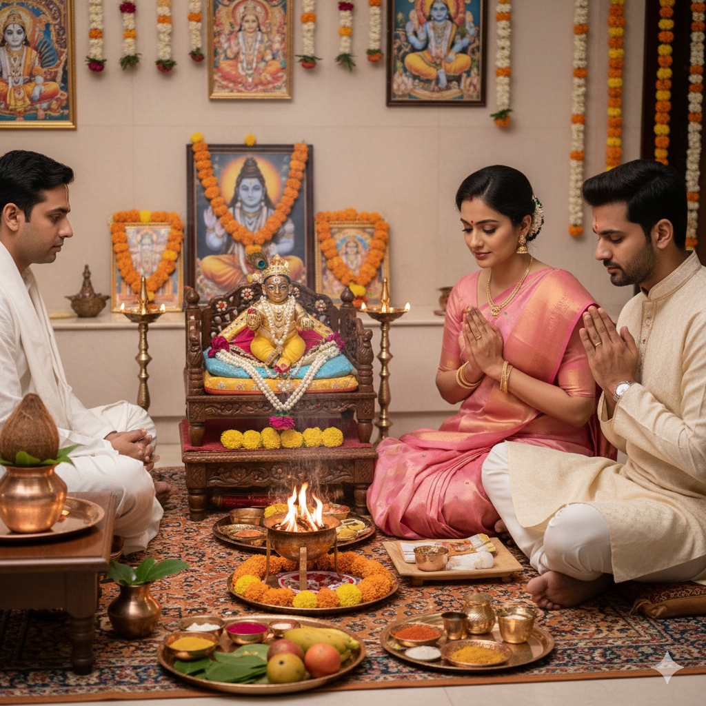 Mark the auspicious entry into your new home with rituals to invoke blessings for harmony, prosperity, and protection of the household.